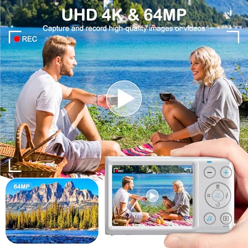 Click for More Images ?4K Digital Camera & 64MP & Debounce?Featuring a premium CMOS sensor and anti-shake technology,this digital camera delivers crisp resolution sensor and supports 4K ultra-high-definition video recording, perfectly capturing...