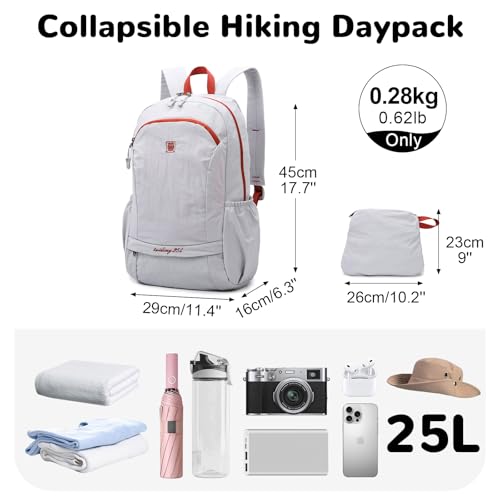 Click for More Images LIGHTWEIGHT AND FOLDABLE: This foldable hiking daypack has a capacity of 10L, weighs only 0.77LB, and the folded size is only 5.9"x7.5"x2.3", the hiking backpack is lightweight, small in size, easy to carry, and it's enough...