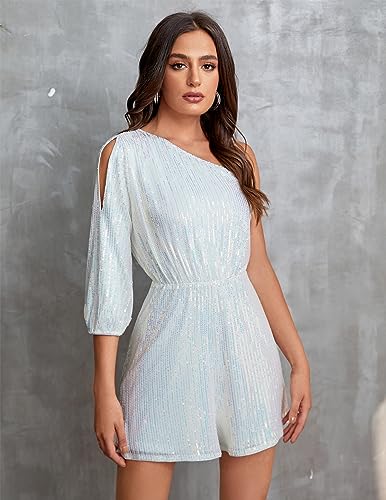 Click for More Images Romper Highlight: The romper length reaches mid-thigh and the oblique neckline design, sexy with individual beauty, with the sparkling sequins, make you the light in the center of the stage.Sequins Rompers: For party,...