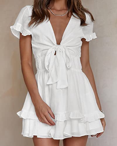 CUPSHE Women’s Summer Slip Boho Maxi Dress Lace Up Tassel V-Neck Flare Ruffle Beach Dresses White XS