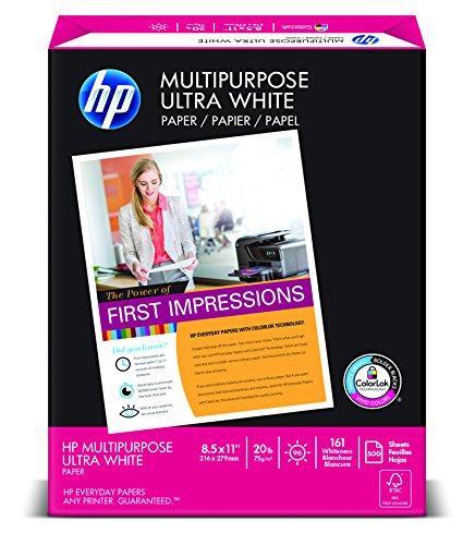 HP Paper, Multipurpose Ultra White, 20lb, 8.5 x 11, Letter, 96 Bright, 500 Sheets / 1 Ream, (112000)