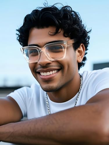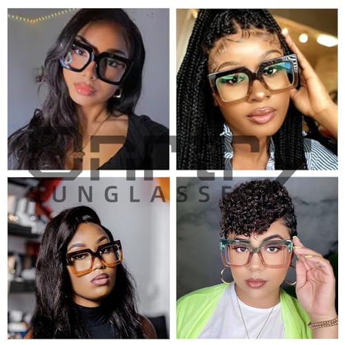 Click for More Images LARGE FRAME BLUE LIGHT GLASSES for Woman Men:The big frame glasses for women men can reduce glare and protect eyesight, travel with fashion.And the chunky glasses for women men design keeps you looks professional and elegant...