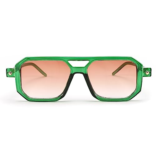 Click for More Images RETRO VINTAGE 70's TRENDY STYLE -These FEISEDY square 70s aviator sunglasses, unique double bridge frame can match with various facial shapes.Textured temples are designed to be three-dimensional and stylish, this design is...