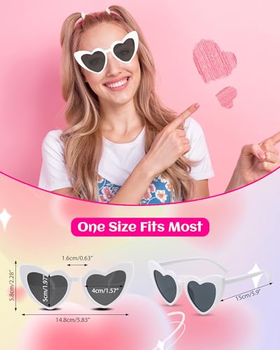 Click for More Images Value Pack: 2 pairs white heart sunglasses for women, enough for your event party needs. The heart-shaped sunglasses add a fun and trendy touch to any outfit, making them perfect for various occasions such as festivals,...