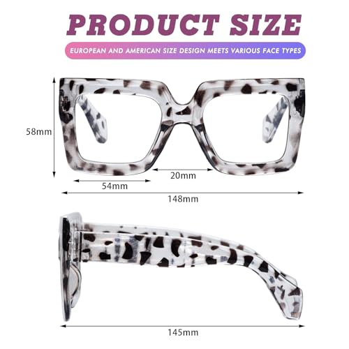 Click for More Images Product Size: The oversized square glasses frame measures is about 148mm in length and 58mm in width. The glasses leg is approx 145mm. The thick fashion clear glasses is lightweight of 1.6oz.Oversized Square Design: Trendy...