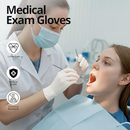 Click for More Images Medical Grade Versatility: EN35W white nitrile exam gloves provide high-quality protection for medical exams, hospitals, and health professionals. Also perfect as tattoo gloves and barber gloves for men and women.Food-Safe...