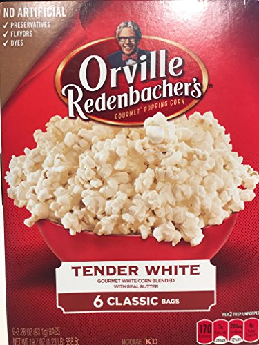 100% Whole Grain made with Non-GMO Popcorn, Gluten Free Orville Redenbacher's Tender White Classic Bag 6 count 19.7 oz ( 2 Pack)No Artificial Preservatives,flavors or dyesGourmet White Corn blended with Real...