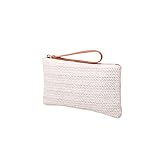 Click for More Images High Quality: This straw clutch is made of high quality straw and peach skin, PU with the wristband.Straw won't scratch your clothes or your skin.Dimension: 8.7" x 5" (Length x Width).Large enough to hold your cash, cards,...