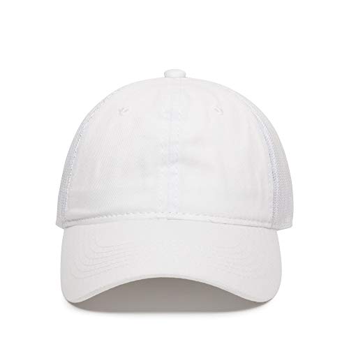 Click for More Images Soft mesh back - premium heavy washed mesh back capLow profile - 6-panel, unstructured, hook/loop tape closure, cotton sweat bandPre-curved visor with six rows of stitchingPlatinum series printed seam taping100% garment...