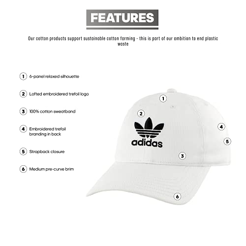 Click for More Images 6-panel relaxed silhouetteLofted embroidered trefoil logo100% Cotton sweatbandEmbroidered trefoil branding in backMedium pre-curve brimStrapback closure More Information...