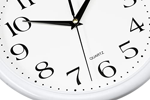 Click for More Images 10 inch white analog Quartz clock. Large black bold numbers against white face creates easy viewing. Precise quartz movements guarantee accurate timeSilent non-ticking mechanism with sweeping movement. Enjoy a quiet...