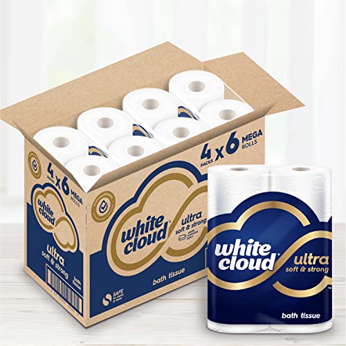 Click for More Images Contains 4 packs of 6 Mega Rolls of White Cloud Ultra Soft & Strong toilet paper, equal to 96 regular rolls. 4 individual packs in a case. Contains 264 sheets per roll, 6,336 sheets in total.Authorized retailers: Amazon and...