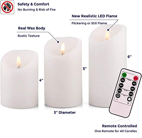 Click for More Images Realistic Flameless Candles - Coated real wax, simulated black wick flame, candles flickers gently and gives off a warm white glow, realistic as real candles.Convenient Remote & Timer Function - Remote controller allows to...