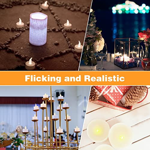 Click for More Images ?Flicking and Realistic?- LED tea lights has a realistic appearance and flashing and warm lights, which can create a romantic and warm atmosphere.?Long Lasting?- High quality CR2032 battery can make the candle continuous...