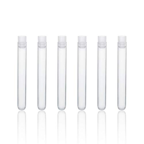 Click for More Images 60pcs of plastic test tubes with flange stoppers and 1pc of tube rackTubes and tube rack are made of durable, autoclavable polypropylene (PP) materialDimension of test tubes is 16x125mm, nature color, round bottomDiametre of...