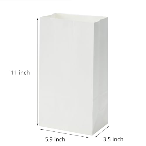 Click for More Images Size: 5.9x3.5x11 InchesQuantity: 40 PcsColor: WhiteMaterial: Kraft PaperThe sturdy and foldable bottom makes the lunch bag easy to stand and carry. More Information...
