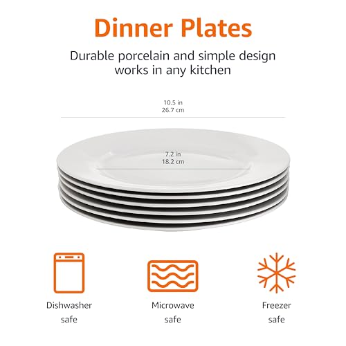 Click for More Images Dinner plates for everyday use or entertainingIncludes 6 dinner plates made of durable AB-grade porcelain with a white finishMicrowave-, oven-, and freezer-safe for versatilityWithstands temperatures from 5 to 572 degrees...