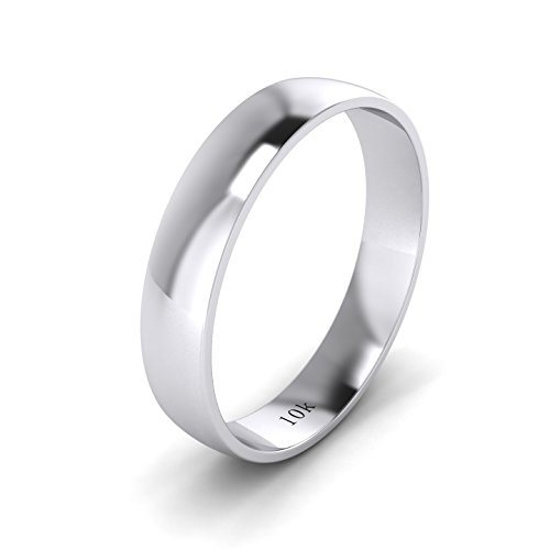 Unisex 10k White Rose Yellow Gold 4mm Light Court Shape Comfort Fit Polished Wedding Ring Plain Band