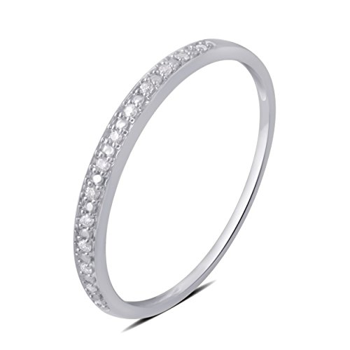 Paired with your engagement ring or worn alone for a simple matrimony accessory, this wedding band will make the perfect companion. This slim band is offered in white 10K white gold to match any set, and is decked with a row of round-cut diamonds...