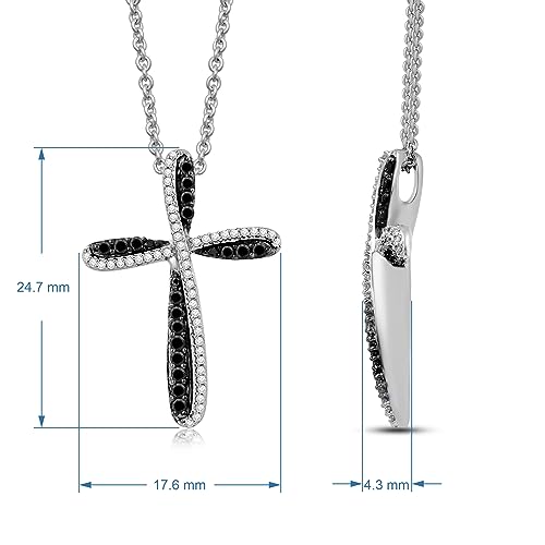 Click for More Images Heavenly divine 925 sterling silver cross pendant with 1/3 Cttw treated black and natural white round diamonds reflecting all good things in the worldDimension - L:24.7 MM, W:17.6 MM, H:4.3 MMPackaging & Return – All our...