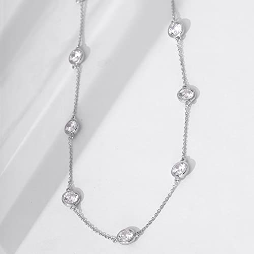 Click for More Images Platinum plated sterling silver necklace featuring round brilliant cut Infinite Elements Cubic Zirconia in bezel-set stationsZirconia stations are suspended from 18" silver-tone cable chainSecured with spring-ring claspEach...