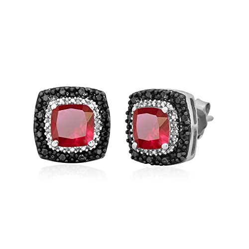Click for More Images A gem of color for a gem of a person! Made with 6MM cushion shape created ruby and treated black & white natural diamond accent in 925 sterling silver, this earring is a great choice to complement your evening gownsDimension...