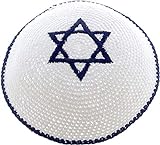 Click for More Images Jewish knitted kippahWith embroidered dark blue Star of Magen DavidDiameter 14.5 cm/5.5 inch More Information...