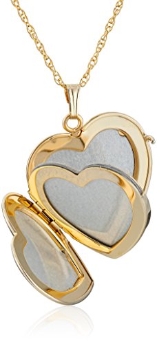 Click for More Images 14k yellow gold-filled necklace featuring heart-shape locket with floral hand engraved borderOpens to display four picture frames and includes a 20" gold-filled chain with lobster claw claspHidden hinge mechanismHand crafted...