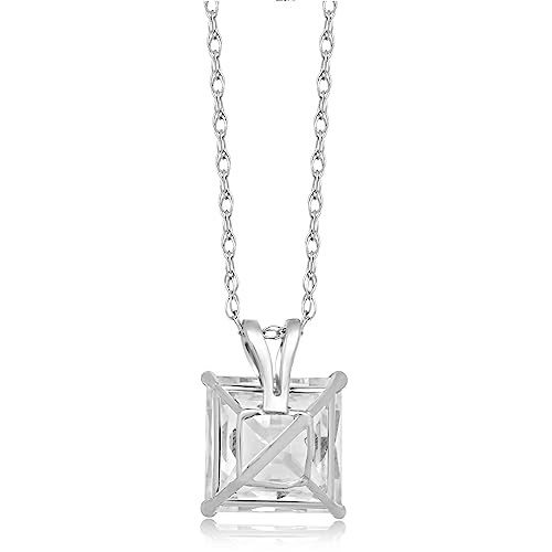 Click for More Images Solitaire pendant necklace featuring a sparkling 7 MM princess cut cubic zirconia stone in a classic four-prong setting in 10K white gold dangled on 18 inch rope chainDimension - L:9.5 MM, W:6.7 MM, H:4.3 MMPackaging...