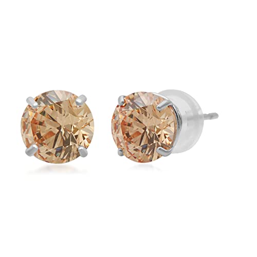 Click for More Images Refined and sophisticated, this pair of 6MM round cut champagne cubic zirconia solitaire stud earrings have a timeless appeal. Each earring has a sparkling and clearly faceted crystal set in 10K white goldDimension - L:5.5...