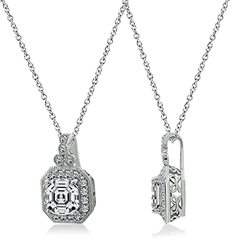 Click for More Images STYLE: This classic cable chain necklace is 18'' long with a brilliant square halo pendant (13mm L x7mm W); a 7mm asscher cut Infinite Elements Cubic Zirconia centerpiece is surrounded by a halo of 1.5mm smaller stones with...