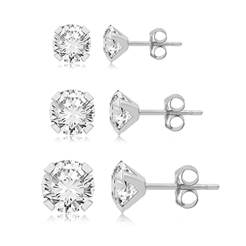 Click for More Images 3 cute pairs of 10K white gold ear studs in different sizes 4 MM,5 MM,6 MM elegantly crafted with white round cubic zirconia stones in prong for luxurious shine and feel. Your jewel is presented in three beautiful gift...