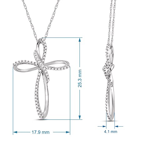Click for More Images Add a little sparkle to your mind with this beautiful charming diamond swirl cross pendant in 10K white gold embellished with 1/5 Cttw natural white diamonds dangled on 18 inch rope chainDimension - L:25.2 MM, W:17.9 MM,...