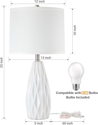 Click for More Images Contemporary Farmhouse Design:This ceramic table lamp for living room features white fabric lamp shade which will create romantic, warm, cozy atmosphere for any corner of the house. Elevate your space with this table lamp,...