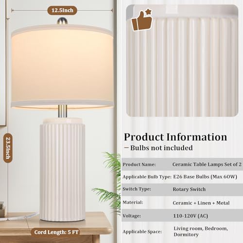 Click for More Images ?Ceramic Table Lamps Set of 2?The ceramic living room lamps are designed with an exquisite cream polished process and a unique vertical stripe pattern, which can easily fit into most decorative styles such as modern,...