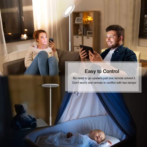 Click for More Images Multiple Control Ways:With the remote control, you can easily control the floor lamp without leaving the sofa and warm bed (with a 32.8ft/10m range).Add-on touch control, stepless brightness adjustment(brightness from 5% to...