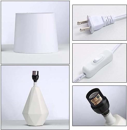 Click for More Images White geometric ceramic baseWhite fabric drum shadeEasily accessible rotary switch on cordUses 1 x 40W type B candelabra base bulb or Type G 16.5 (globe shape) candelabra base bulb (not included)Lamp measures L: 5.50" x W:...