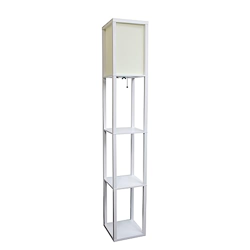 Click for More Images Floor lamp with 3 shelves for storage/displayPull-chain on/off switchLinen shade casts soft, warm glowAssembly RequiredLamp measures: L:10" x W:10.2" x H:62.75"Uses 1 x 100W Type A medium base bulb (not included) More...