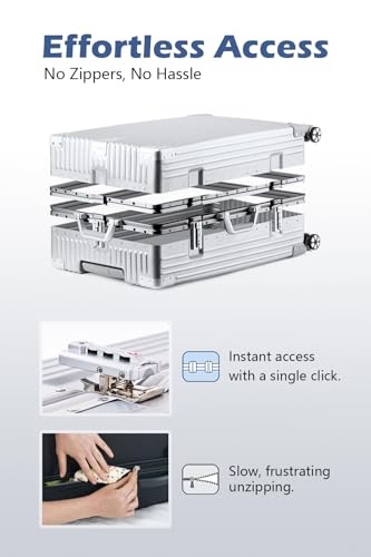 Click for More Images OVERALL DIMENSION: The size of the 28 inch checked luggage: 30.7x18.1x11.4 IN. Weight: 10 LB. Capacity: 90L (Including spinner wheels, handle, accessories, etc.)ADVANCED ZIPPERLESS DESIGN: Our zipperless aluminum frame...
