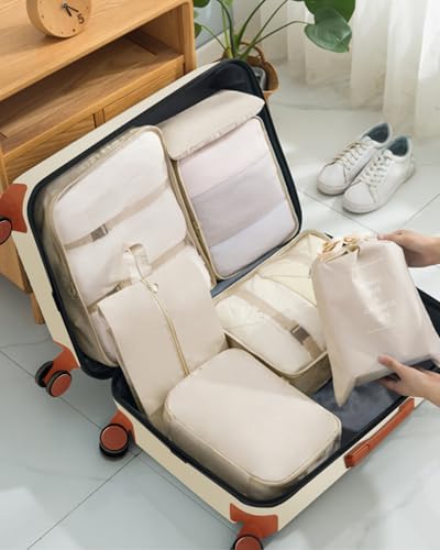 Click for More Images 8-Piece Luggage Sets: The luggage sets include a 20inch carry-on suitcase and 7 pieces travel storage bag. The 20-inch suitcase is great for short trips or as a carry-on option. It meets most airline size restrictions,...