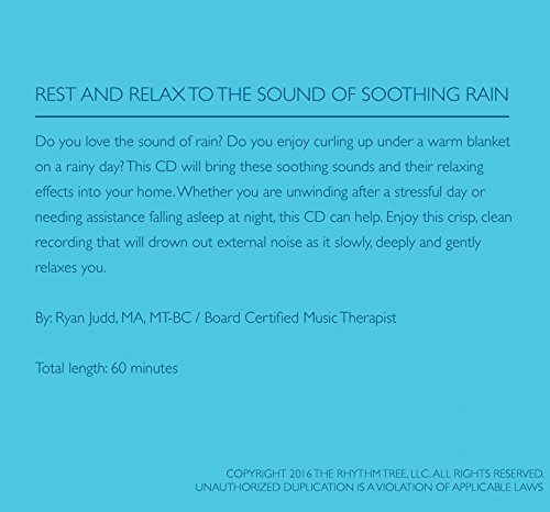 Click for More Images 60 minutes of calming rain. Relax, unwind and drift off to sleep to the sound of real falling rain.Authentic professional recording of a rain shower. Creates white noise to drown out household soundsNo annoying loops, loud...