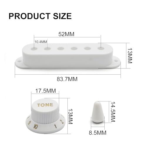 Click for More Images Pickup Covers fit most single coil pickups,SAPHUE Pickup Covers is compatible with strat fender stratocaster electric guitars.The switch tip has a cross hole which can fit most USA Fender switches or some import switches...