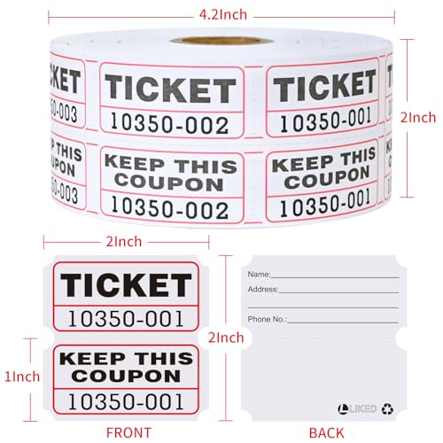 Click for More Images Rolls of 1000 double stub raffle tickets, with consecutively numbered and Perforated line ,easy to use save to time-white.Each double stub raffle tickets measures 2x2 inches and split Into 2 X 1 inch halves.The back of the...