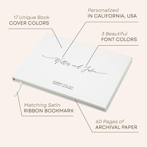 Click for More Images Personalized guest book w/ hard cover & ribbon bookmark.Includes book cover customization. Choose from 17 book cover colors & 4 font colors.Size: 11.5 x 8.5 inches, Pages: 60 pages (120 sides front & back), Paper: 120 gsm...