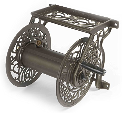 Liberty Garden Products 704 Aluminum Decorative Wall Mounted Hose Reel is stylish and functional. This reel easily secures to walls, holding up to 125-feet of 5/8- garden hose and has 5-feet of leader hose. Simply pull out the hose for use,...