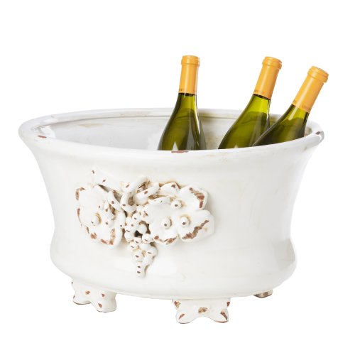 Grape Oval Tub with Feet. Can be used to chill bottles of wine or juice, displaying flowers or a plant, or as a decorative accent piece. Napa Home & Garden's Tuscany Collection features white glazed ceramic pottery that is a must-have for any...