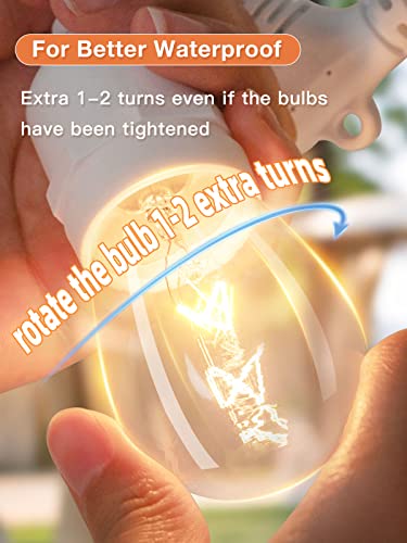 Click for More Images Dimmable Outdoor String Lights: Not solar powered! 50 FT 25 sockets Plug in G40 globe light contains 27 durable clear bulbs (2 spare), give off a warm lighting that is great to sit under in the evenings. Well packaged...