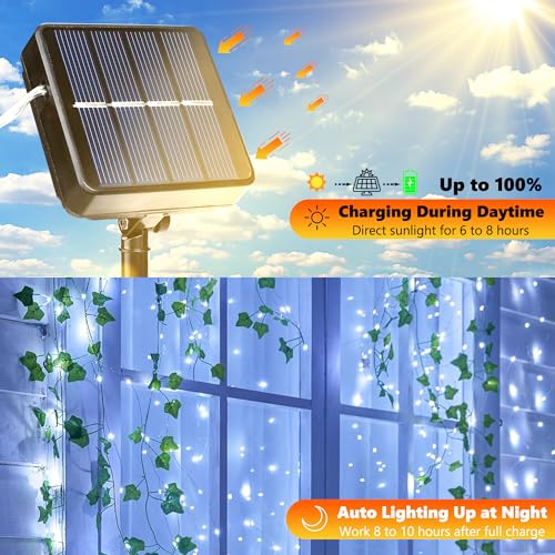 Click for More Images Solar Powered and Auto On/Off: White Christmas string lights powered by solar energy with no extra electric cost or battery replacement needed. The light sensor charges the lights during the day and turns them on...