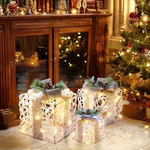 Click for More Images Large Christmas Boxes: Set of 3 Christmas gift boxes of different size; Large box 7.8 Inch; medium box 6.3 Inch; small box 4.3 Inch; Exquisite and lightweight; ignite the holiday spirit with a beautifully wrapped christmas...