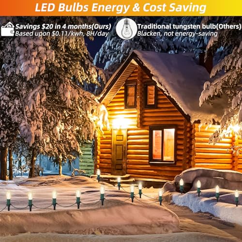 Click for More Images Grand 60FT Warm White Illumination: Our flagship 60-foot string with 40 warm white bulbs offers the ultimate in elegant, continuous lighting. These c9 christmas lights are perfect for grand entrances, very long driveways,...
